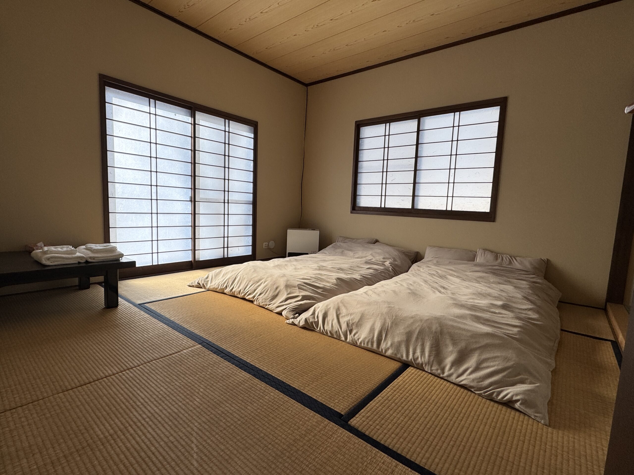 8帖の和室に、ゆったり眠れるマットレス布団を備えたスーペリアルーム。